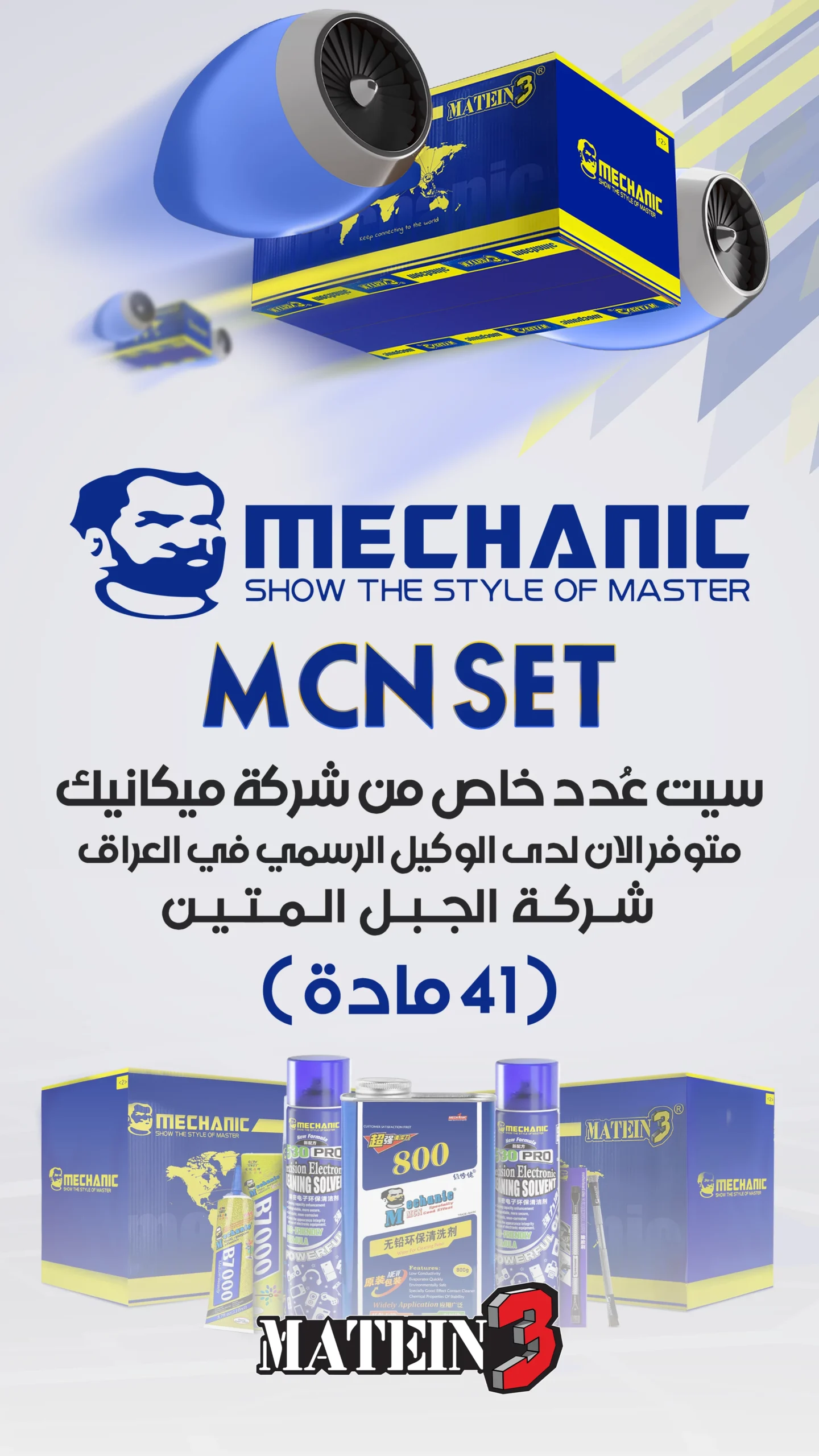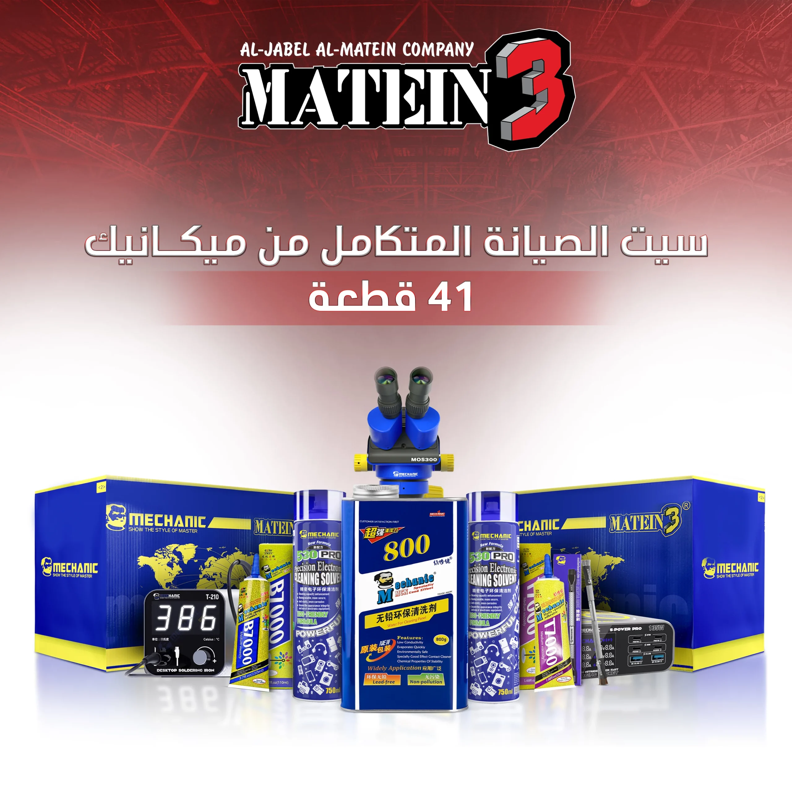 سيت متكامل من شركة ميكانيك العالمية يضم 41 أداة ومادة مختارة بعناية لتلبية احتياجات فنيي الصيانة .